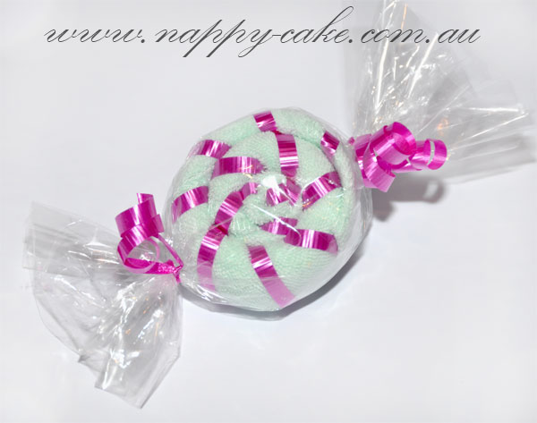Lollies have always been favourite treats for everyone. And any baby shower shouldn’t be without some. In this case it is about face washer or washcloth baby shower lollies. They are very cute and wrapped in crispy cellophane, just like real lollies.